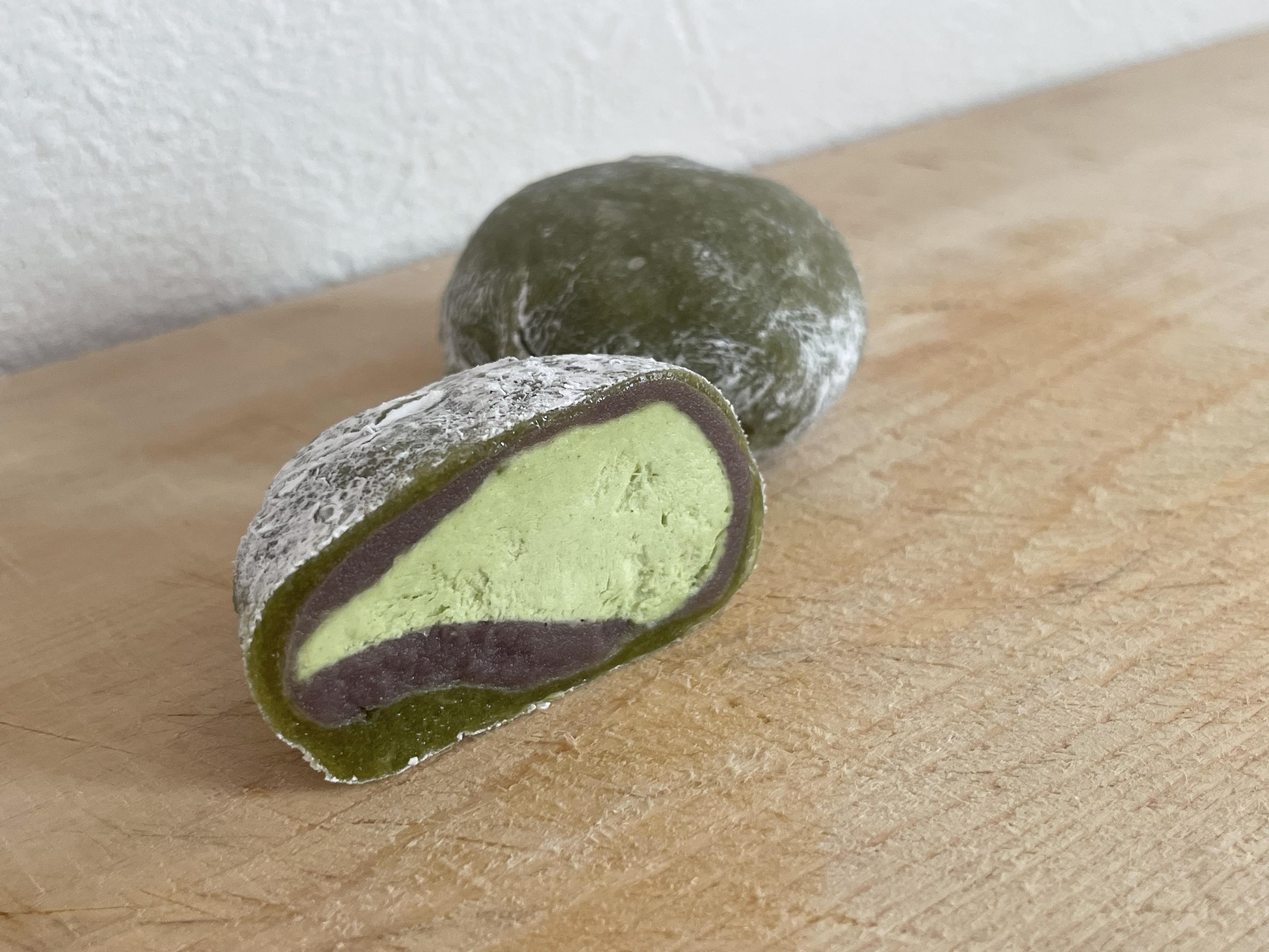 甘さ控えめ、抹茶の香りがふわっと広がる大福。